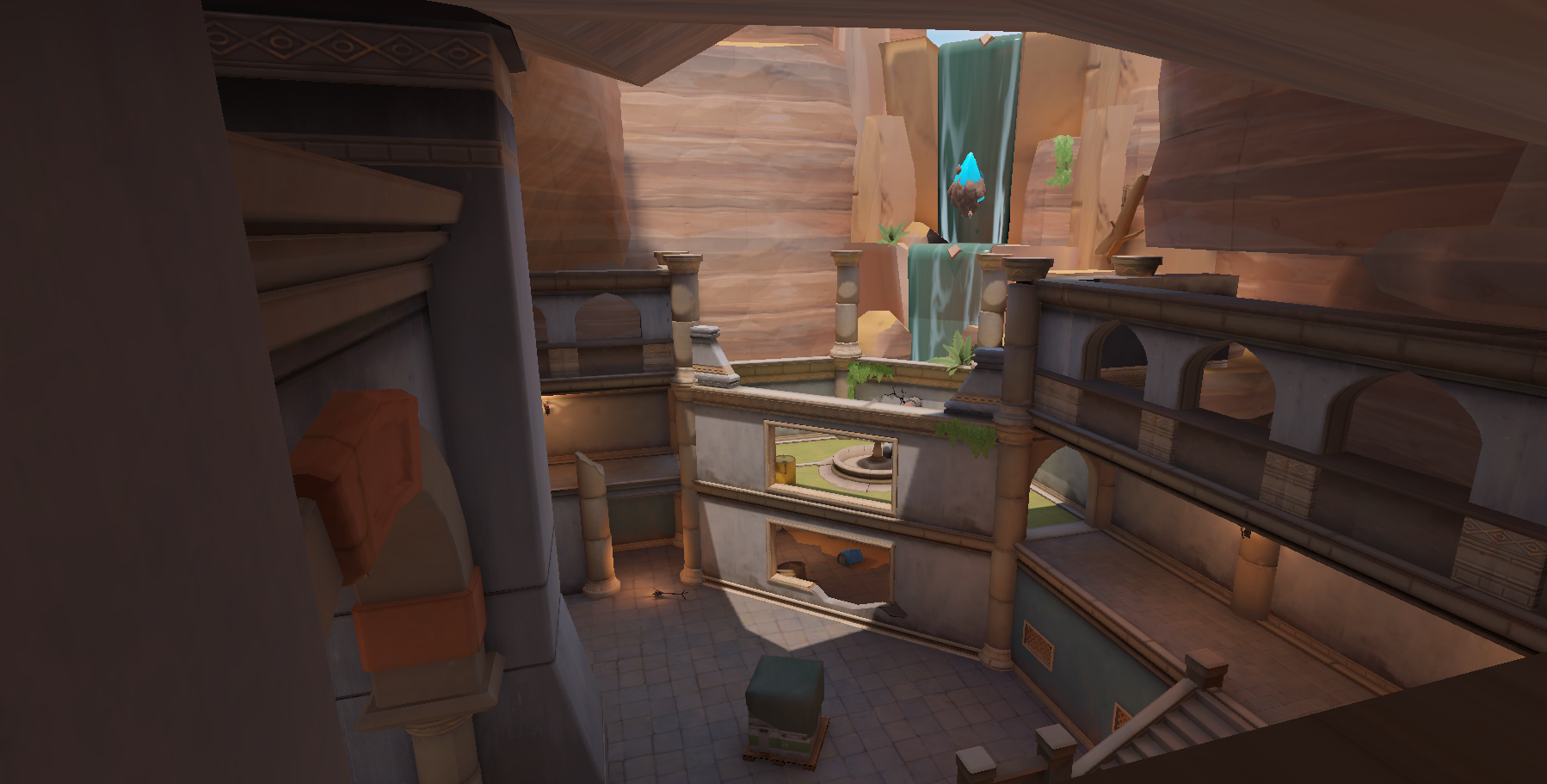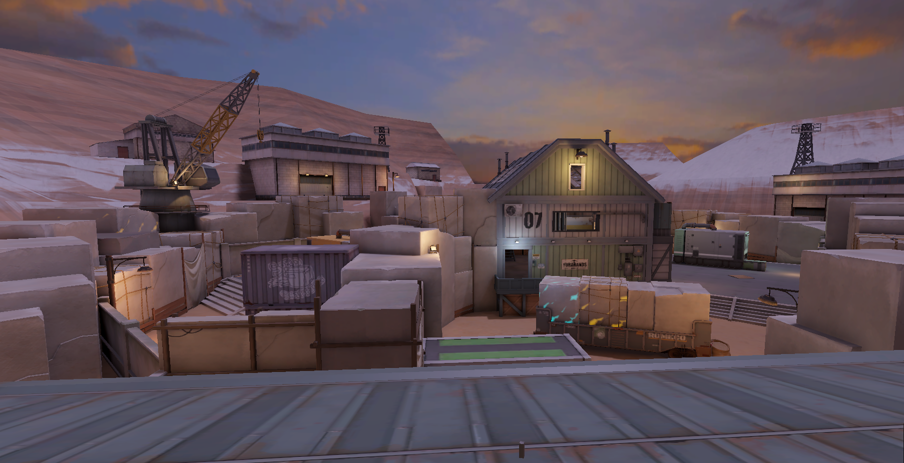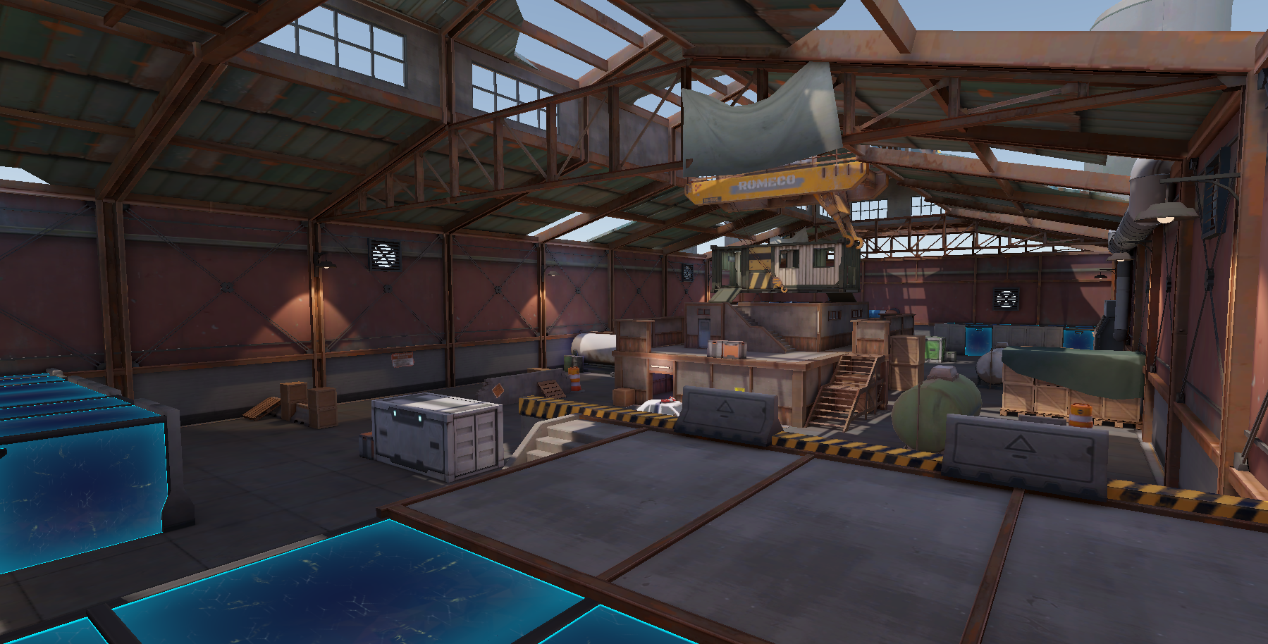 Bản đồ mang phong cách trận chiến tranh giành quyền kiểm soát một mỏ đá, nơi tìm thấy các loại đá bao gồm cả Exnium. Bản đồ được thiết kế với các đường dài (long line) kéo dài hai bên, lấy tòa nhà trung tâm làm trọng điểm. Tầng 2 của tòa nhà trung tâm có một điểm có thể dùng để tấn công khu vực hồi sinh của đội địch, biến việc kiểm soát tòa nhà trung tâm trở thành yếu tố then chốt để giành chiến thắng.